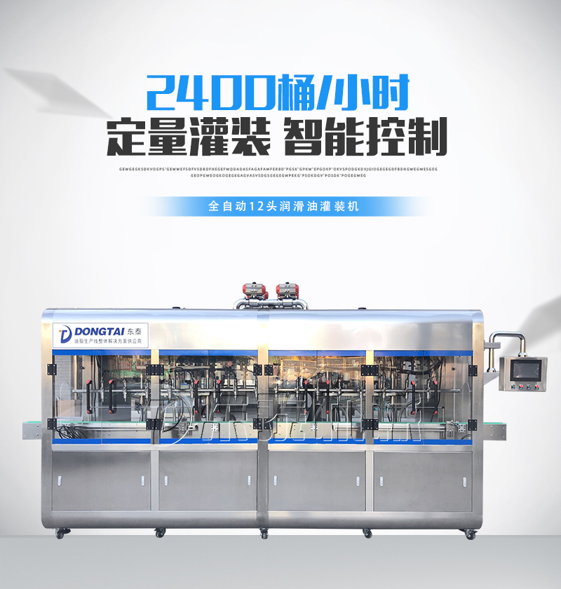 該灌裝機可以配置 高速旋蓋機 油桶貼標(biāo)機 油瓶噴碼機 油壺自動自動裝箱碼垛機。組成油脂灌裝包裝流水線。節(jié)能、自動化的設(shè)備。