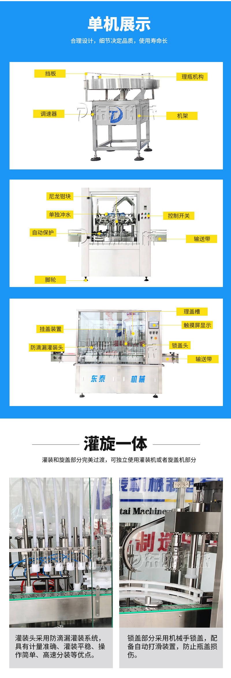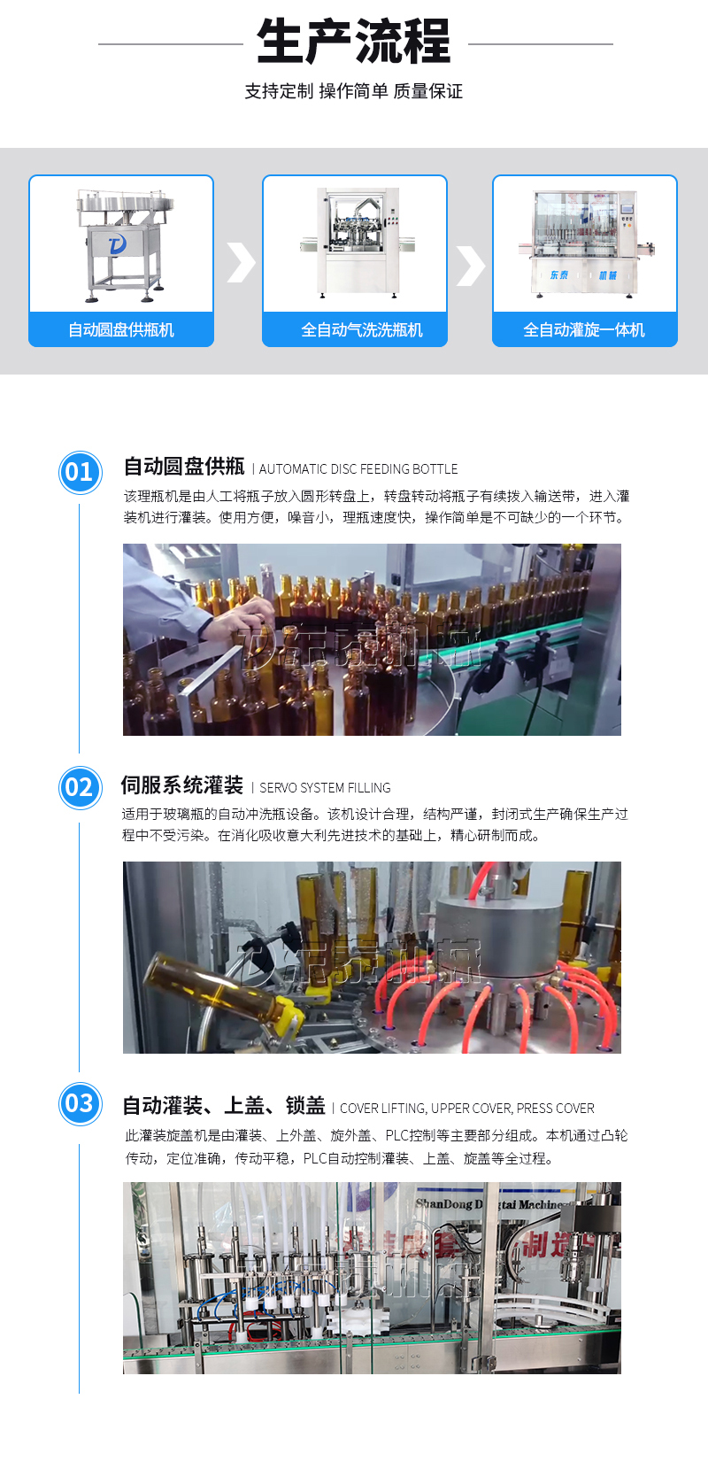 本灌裝流水線設(shè)備具有穩(wěn)定可靠、自動化水平高,相比同類產(chǎn)品有著更長的使用年限,維護簡單,整線中各設(shè)備的協(xié)調(diào)性、連貫性強,整線設(shè)計合理等特點。灌裝設(shè)備采用獨家專利系統(tǒng)結(jié)構(gòu),為當今行業(yè)內(nèi)水平,整線滿足量產(chǎn)化、集成化生產(chǎn)的需要。