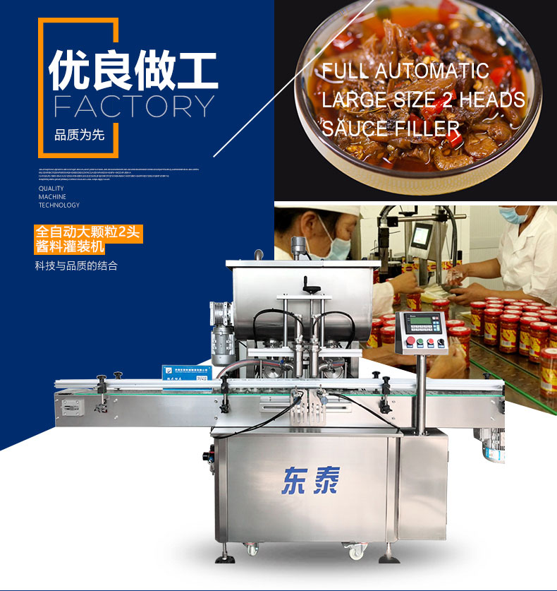 1.灌裝機在參考國外同類產(chǎn)品的基礎(chǔ)上進行改良設(shè)計,特制灌裝醬料灌裝頭,真空回吸防滴漏和機械防滴漏雙重防滴漏保護,在灌裝過程中不會污染瓶口或瓶身,方便后續(xù)的旋蓋和貼標。