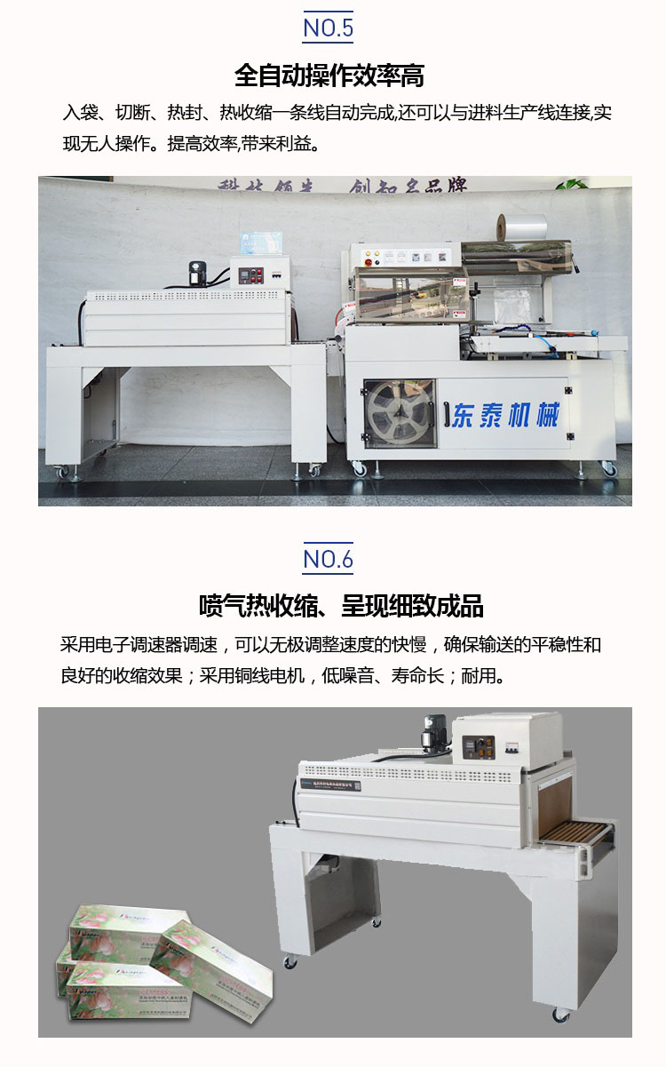 全自動套膜收縮機是由全自動450L封切機和熱收縮機組成,入袋、切斷、熱封、熱收縮一條線自動完成,還可以與進料生產(chǎn)線連接,實現(xiàn)無人操作。提高效率,帶來利益。全自動化封切收割,適用于各種物品的套膜及收縮,生產(chǎn)效率高,品質有保證。