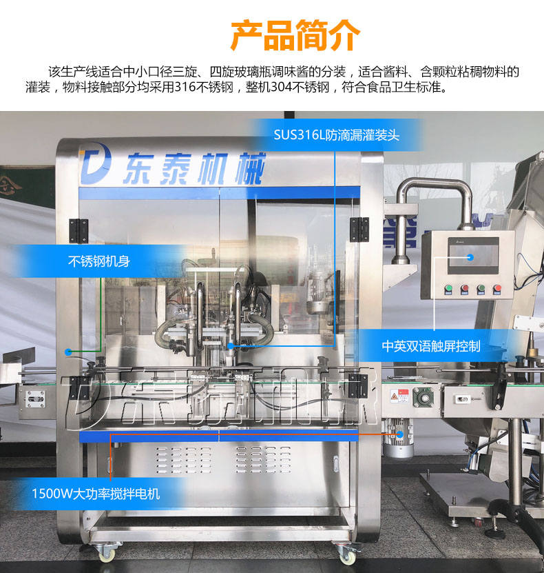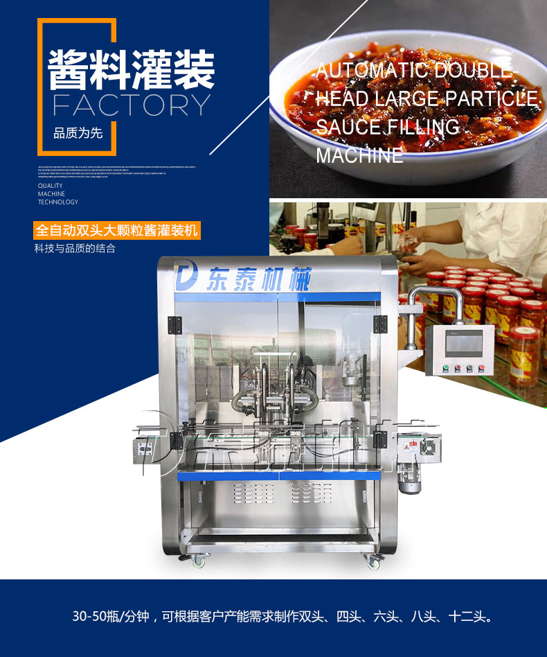 隨著機械技術(shù)的快速發(fā)展灌裝機的發(fā)展也是日新月異,使得其種類比較多。蘸醬在我國擁有悠久的歷史,在我國烹飪中占有著重要的地位,發(fā)展到現(xiàn)在在做菜和食品中也不可或缺,巨大的市場使得蘸醬灌裝機擁有巨大的市場,醬類廠家在引進設(shè)備時都想采購到高效率、適合自己的蘸醬灌裝機械。人們對食品要求的提高使得醬類生產(chǎn)廠家迎來了較大的變格,安全衛(wèi)生是非常重要的標準,因此對蘸醬灌裝機的選擇也更加的要求嚴格,許多傳統(tǒng)的機械已經(jīng)不能滿足企業(yè)高標準、高效率的要求。因此選擇一款適合的蘸醬灌裝機械產(chǎn)品顯得尤為重要。